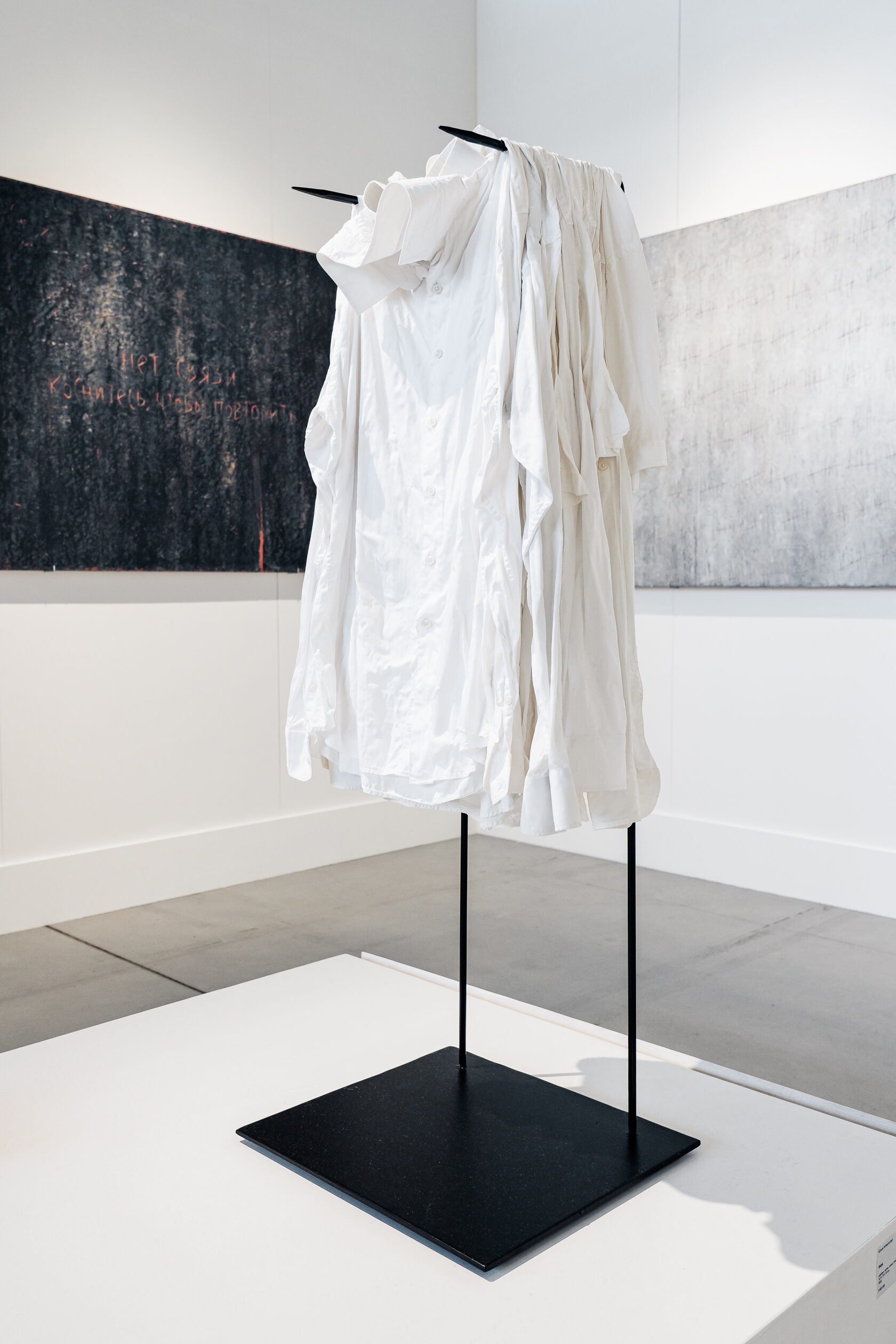Использование приема ready-made* несет в себе пост-дюшановский заряд, но пропитано глубоким этическим и эмоциональным смыслом. Белые рубашки, собранные от реальных людей, становятся социальным архивом частных историй, переводя произведение из чисто художественного высказывания в коллективное свидетельство.