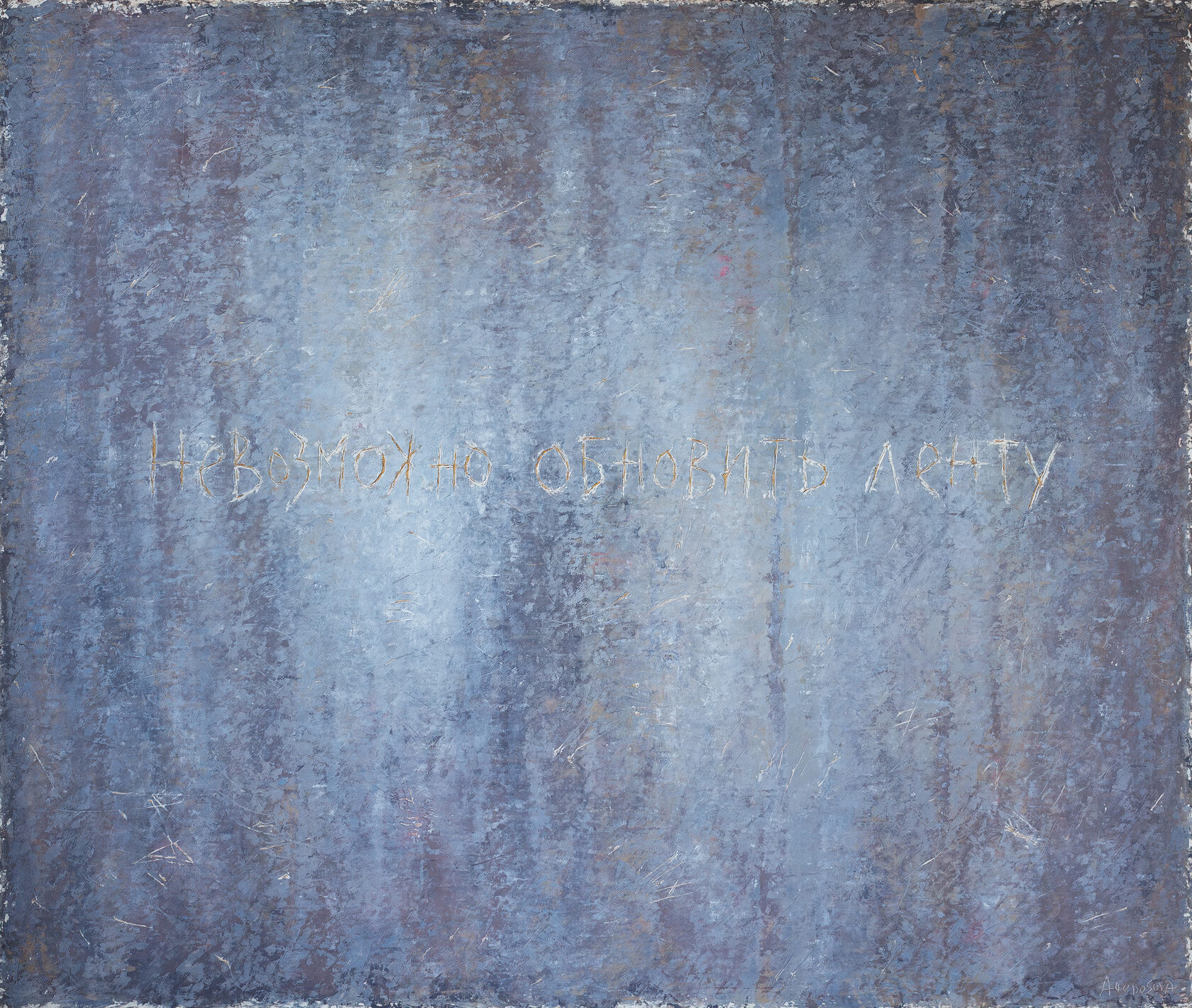 Работы, представляющие увеличенные, абстрагированные «фразы-ошибки» из технологической среды («Повторить попытку», «Невозможно обновить ленту», «Коснитесь, чтобы повторить»), функционируют как визуальные мантры современной зависимости и тревоги.